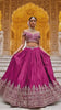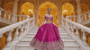 Fuşya Kadife Korse Sırtlı Bridal Lehenga — Kısa Kol & Çok Renkli Zardozi